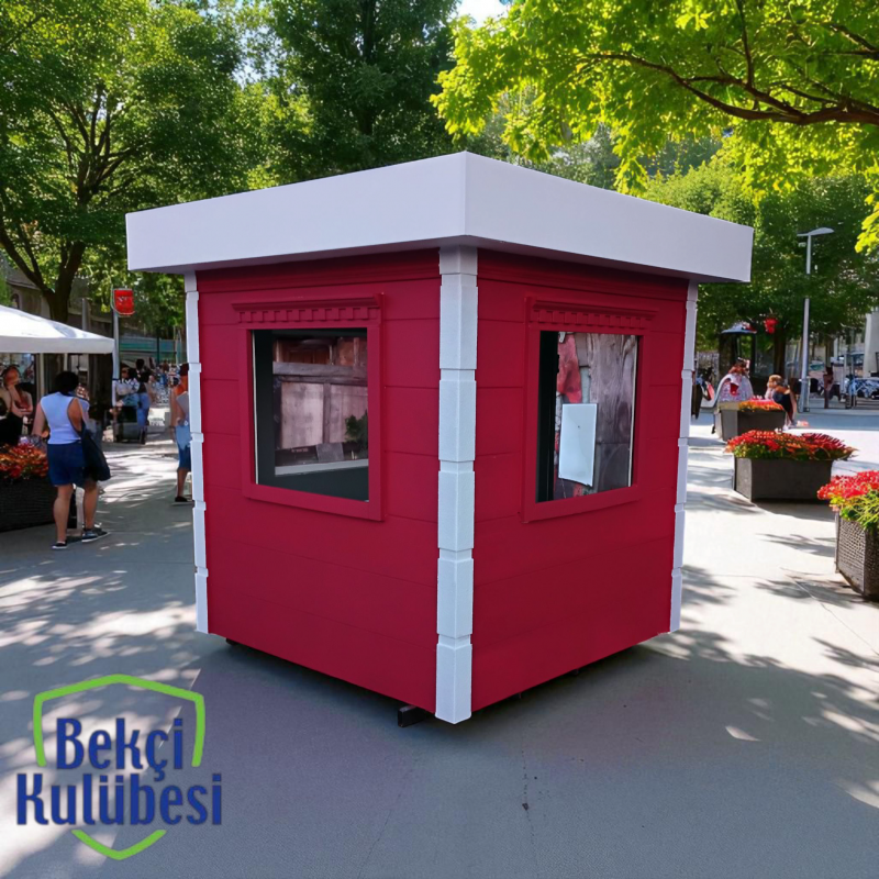 200×200 Cm ölçülerinde fugali 10 mm kalınlığında Fibercement Kaplamalı parapet çatılı sürgülü alüminyum pencereli elektrikli havalandırmalı ral 7011 renk kodlu metrocity Kabin